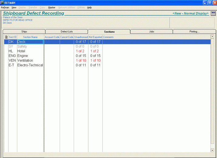 Defects are reported onboard using REFMANs Shipboard Defect Recording module as before except that the ship now also assigns a priority to each defect. Defects are transferred to the office where they can be reviewed, assigned to a Drydock specification or have a status and planned date assigned to indicate how and when they are to be dealt with.